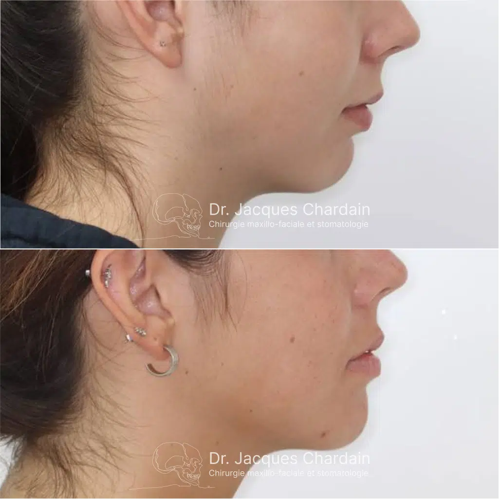 Ainsi, dans certaines circonstances, la correction du menton nécessite surtout le repositionnement de la mandibule ou du maxillaire, sans forcément réaliser de génioplastie.